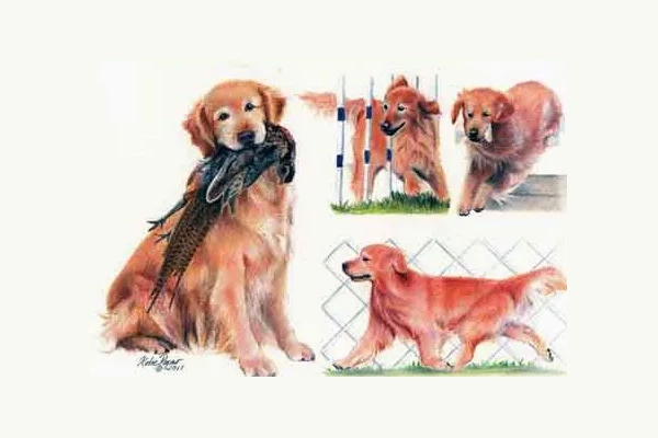 Designed by artist Katie Ropar, the trophy card is a beautiful montage of Goldens at work and play, and will be a welcome addition to the Golden lover’s art collection. They will be treasured mementos of a special win, and will help the Foundation continue its work to benefit all Goldens.